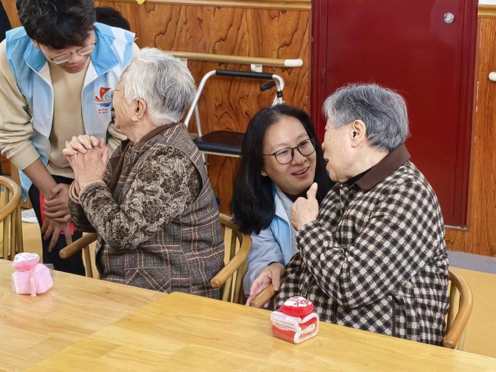 秀林养老服务中心负责人热烈欢迎我院师生到来,并介绍中心运营及老人基本情况。随后,同学们运用专业知识,在精心设计互动小游戏与老人拉近距离,服务现场其乐融融,趣味横生。游戏后,师生与老人围坐交流,或倾听老人过往趣事,或关切询问生活健康,老人笑意盎然,新芽两代情谊再次升温