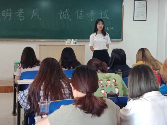 同学们纷纷主动上前表达自己对诚信考试的看法,并表示将以身作则,认真备考,诚信考试,绝不作弊。