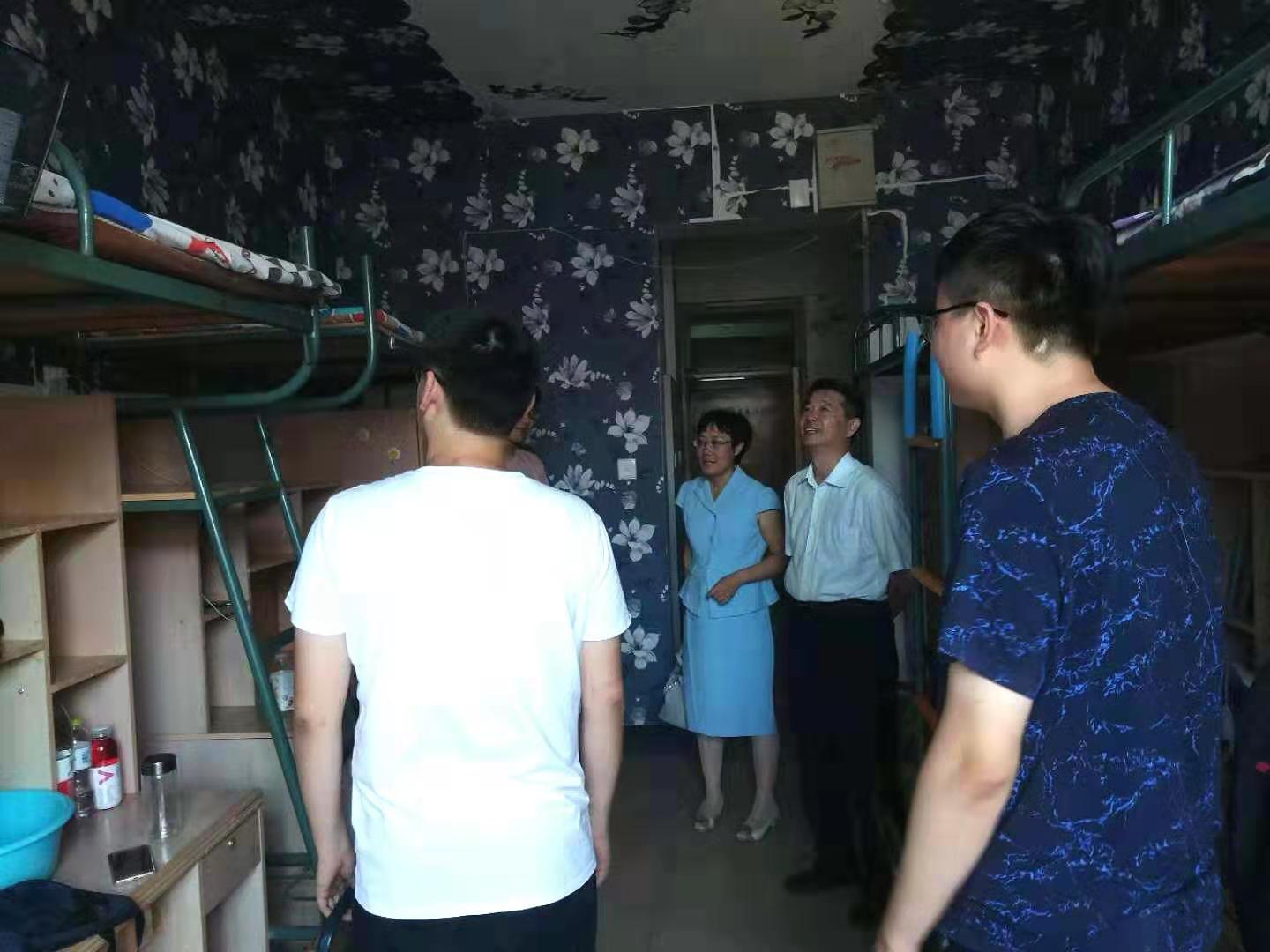 会后,学院领导班子走访研究生新生宿舍,查看他们的住宿情况,询问并关心研究生新生的生活状况。