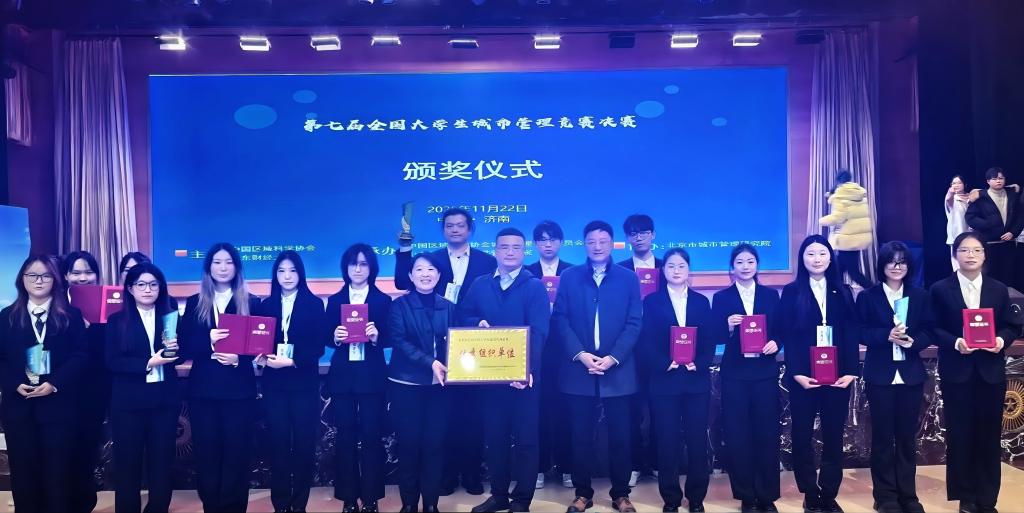 近日,第七届全国大学生城市管理竞赛决赛在山东财经大学顺利开幕。来自厦门大学、南开大学、中南财经政法大学等62所高校的422支本科生和研究生团队同台竞技。经过激烈角逐,我院教师吴波、于海若、孙晓羽、徐福祥指导的十支队伍入围全国总决赛,分别荣获本科生一等奖1项、二等奖4项、三等奖5项。同时,我校以完善的组织保障与参赛表现,荣获“优秀组织单位”荣誉称号。