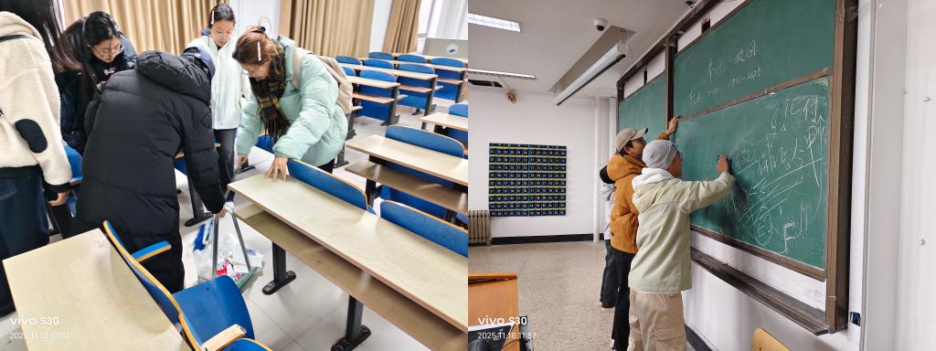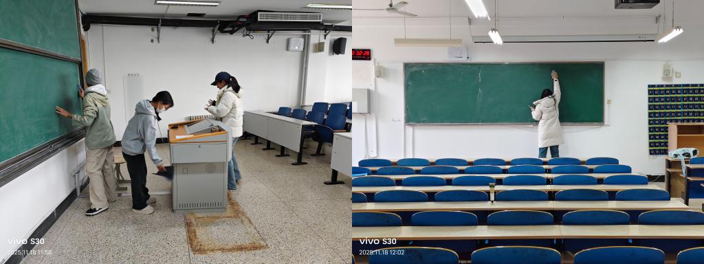 为践行劳动精神,共创洁净学习空间,11月18日,我院于东校区第四教学楼214室、308室开展“绿色课堂,你我共建”教室清洁活动。2024级、2025级学生代表参加本次活动。