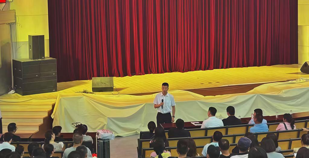为促进家校联动,凝聚育人共识,9月7日下午,我院于大学生活动中心一楼礼堂举行2025级新生家长见面会。学院党委书记李记林、院长汪崇金、党委副书记李震、副院长杜世纯出席会议,各教研室主任、2025级新生辅导员路安平及新生家长参加会议。
