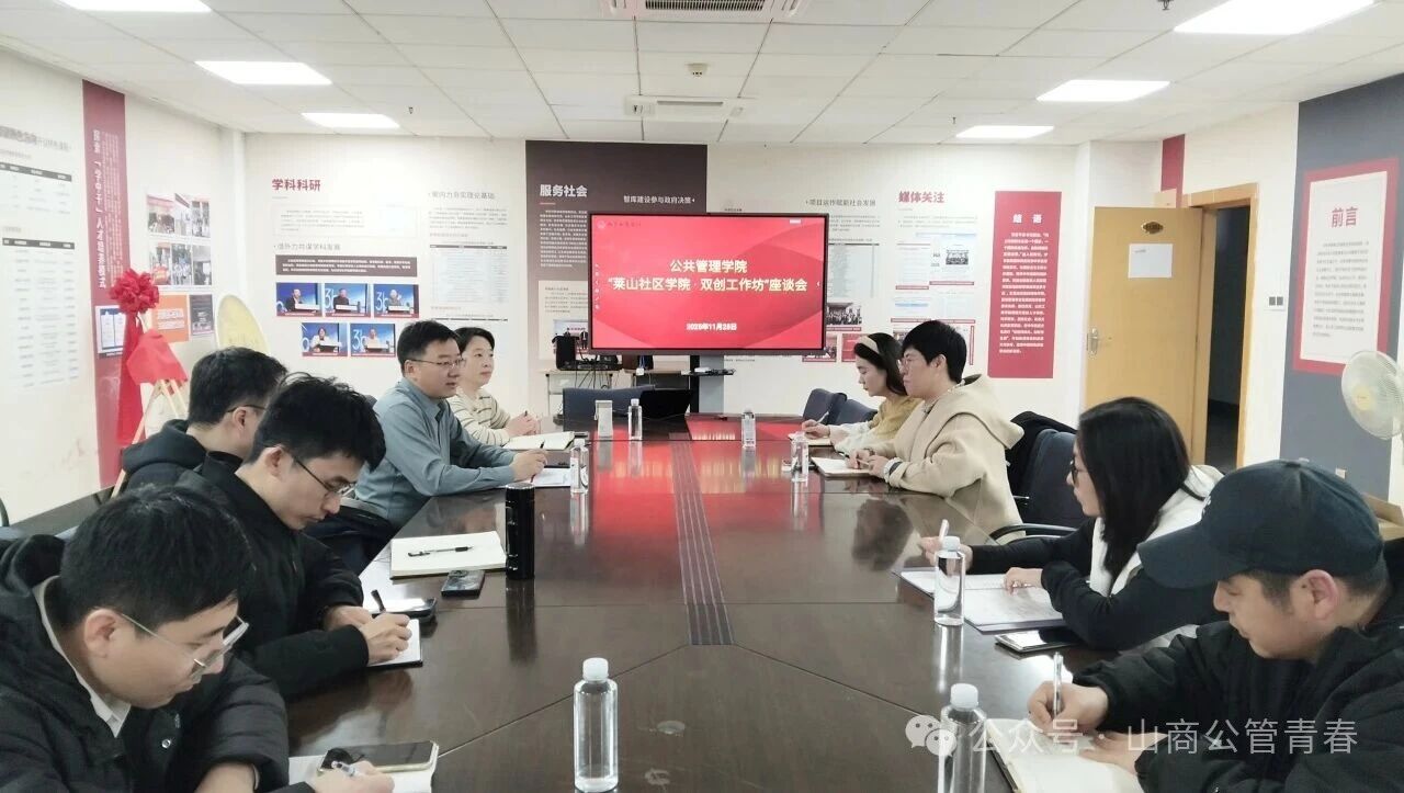 为深化校地协同育人机制,拓展师生实践平台,11月25日,我院于61101会议室召开“莱山社区学院·双创工作坊”阶段性总结座谈会。学院院长汪崇金、莱山区委社会工作部相关领导出席本次会议,学院相关负责同志参加会议。