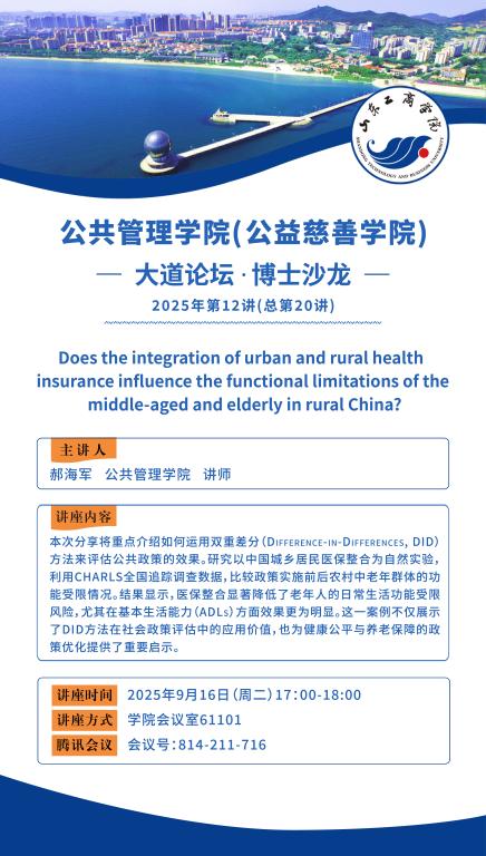 公共管理学院(公益慈善学院)—大道论坛·博士沙龙—2025年第12讲(总第20讲)